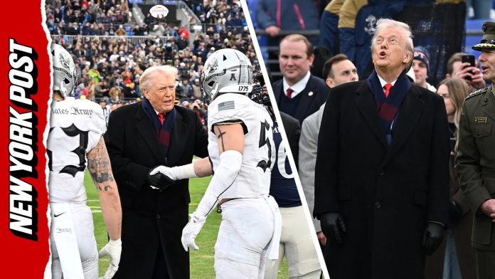 news1todaysnewsW1 Crowd Goes Crazy as Trump Takes the Field for Army-Navy Coin Toss By Americas Trusted News - December 15, 2025 0 15 FacebookTwitterPinterestWhatsApp IMAGE ABOVE FROM VIDEO BELOW TOP COMMENTS FROM VIDEO BELOW Shout out to the veterans! Thank you for your service USA!!!!!!!